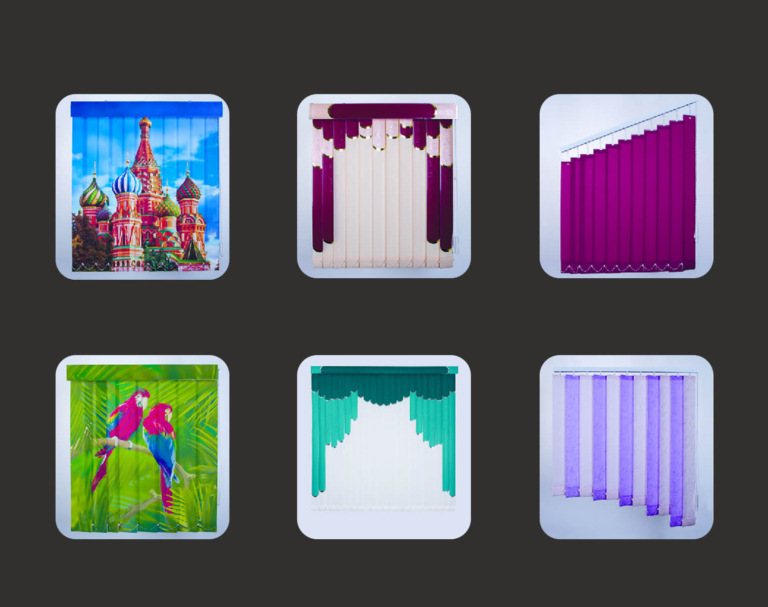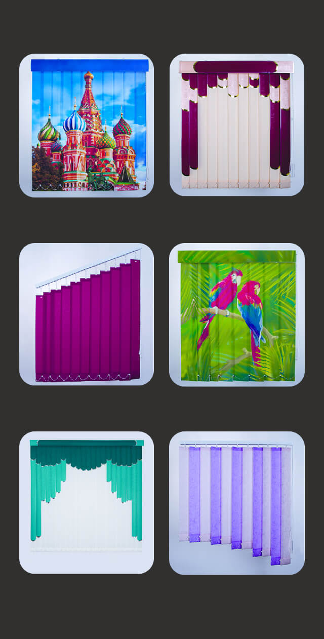 Мы производим специализированные модели вертикальных жалюзи: с фотопечатью, мультифактурные, с чередованием ламелей, наклонные и арочные. Данные варианты исполнения смогут придать индивидуальности офисному или жилому помещению. Сочетание нескольких материалов и цветовых решений на одном полотне позволяет создавать уникальные дизайнерские решения.